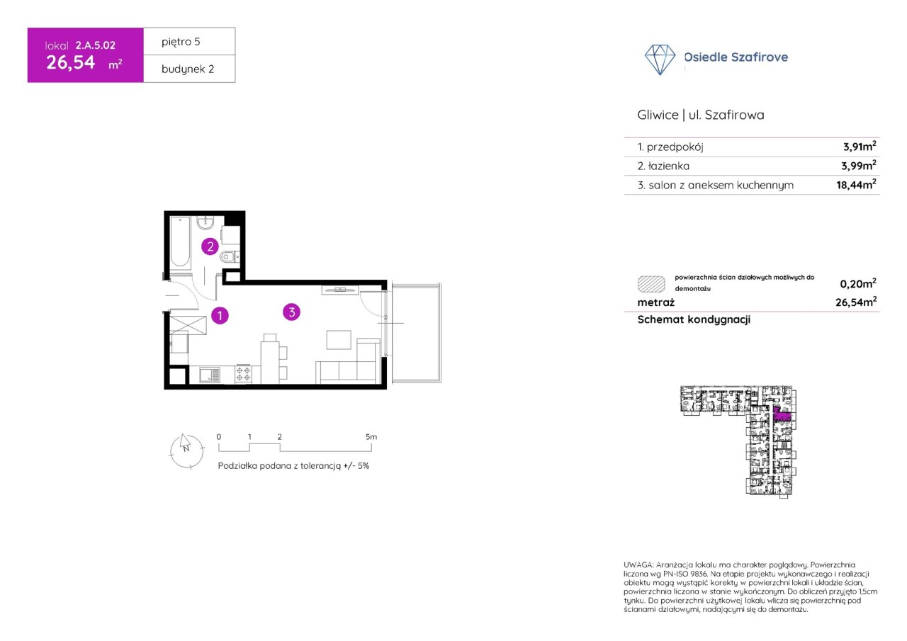 OKALIZACJA: Gliwice, ul. Szafirowa (Osiedle Szafirove) METRAŻ: 26,54 m² | PIĘTRO: OSTATNIE (5) z windą
