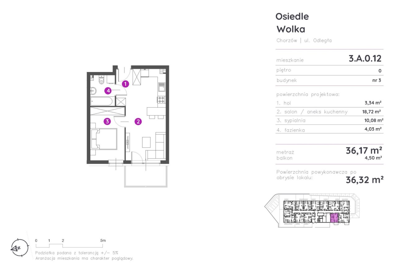 Powierzchnia mieszkania: 36,17 m² (pow. powykonawcza: 36,32 m²)