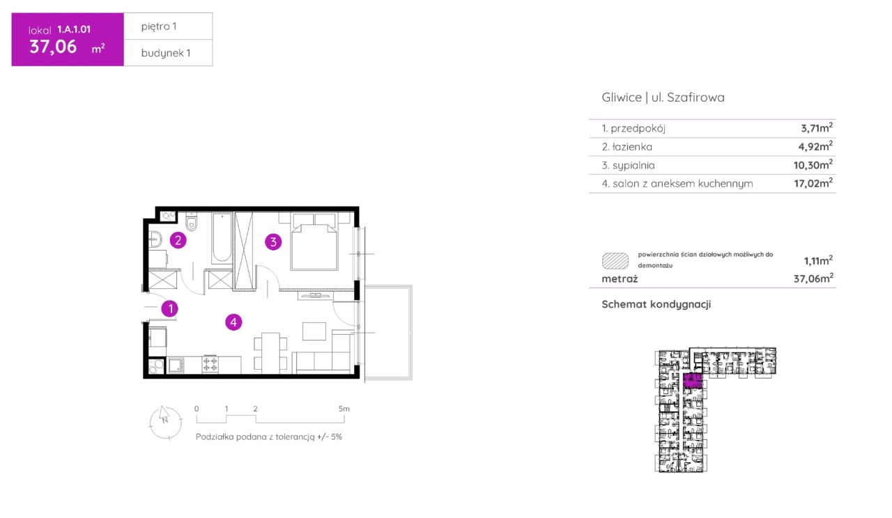 37,06 m² – metraż idealny: nie za mały, nie za duży, sprzątanie nie wymaga planu tygodniowego
