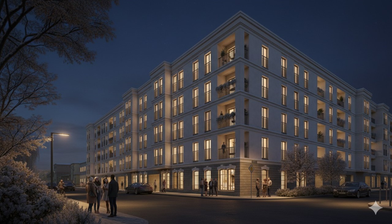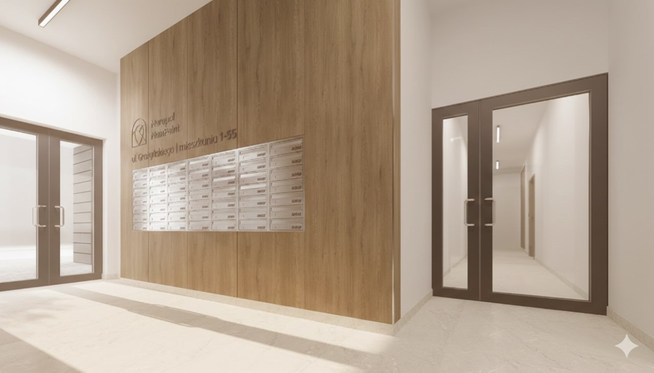 Załączone grafiki stanowią wizualizację. Rzeczywisty wygląd budynku zachowuje pełną zgodność z prezentowanym projektem.