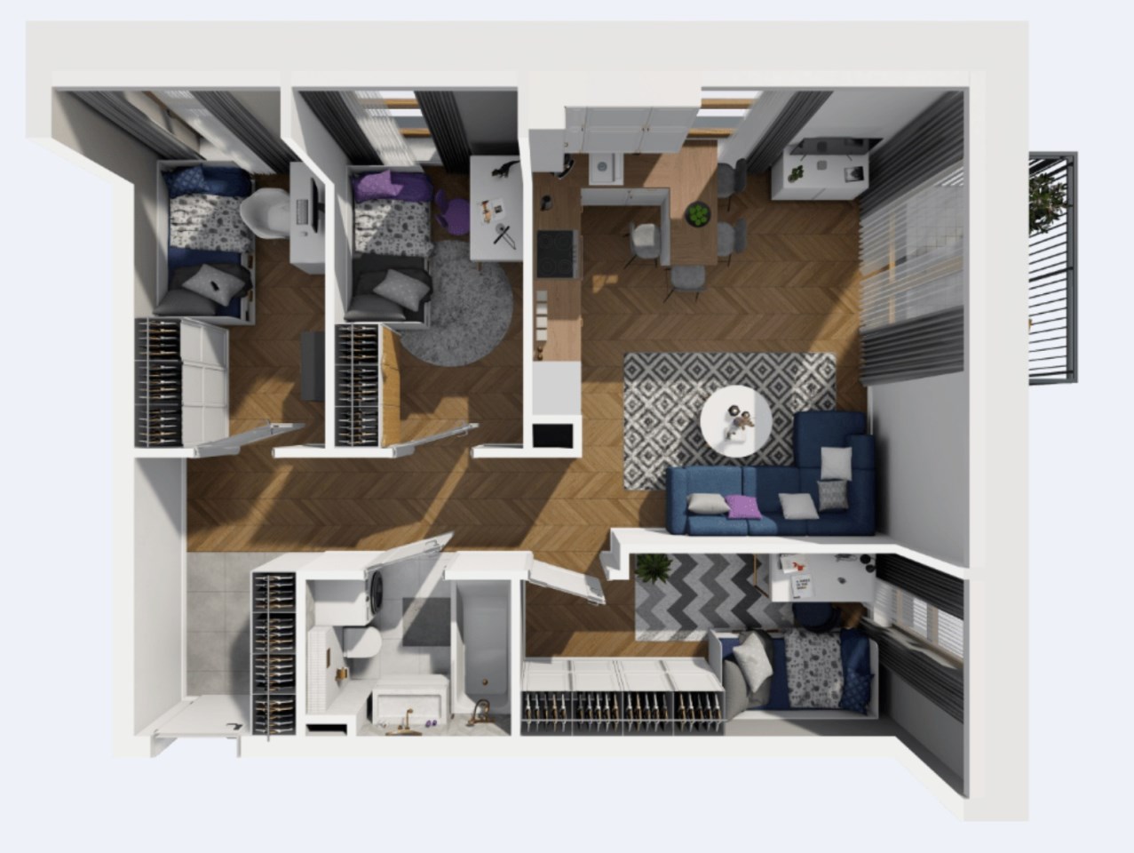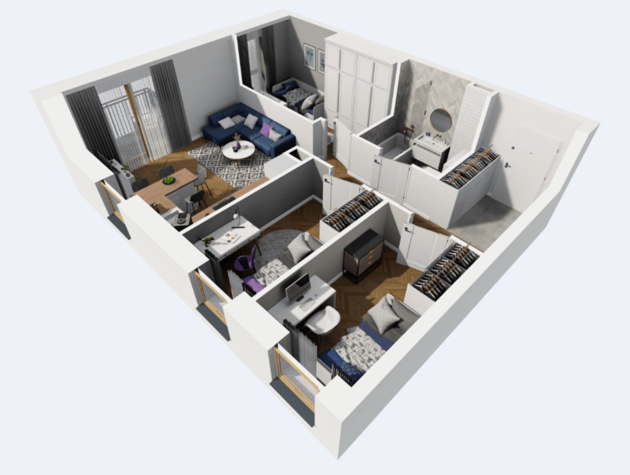 - Sypialnia 3: ok. 7,40 m²