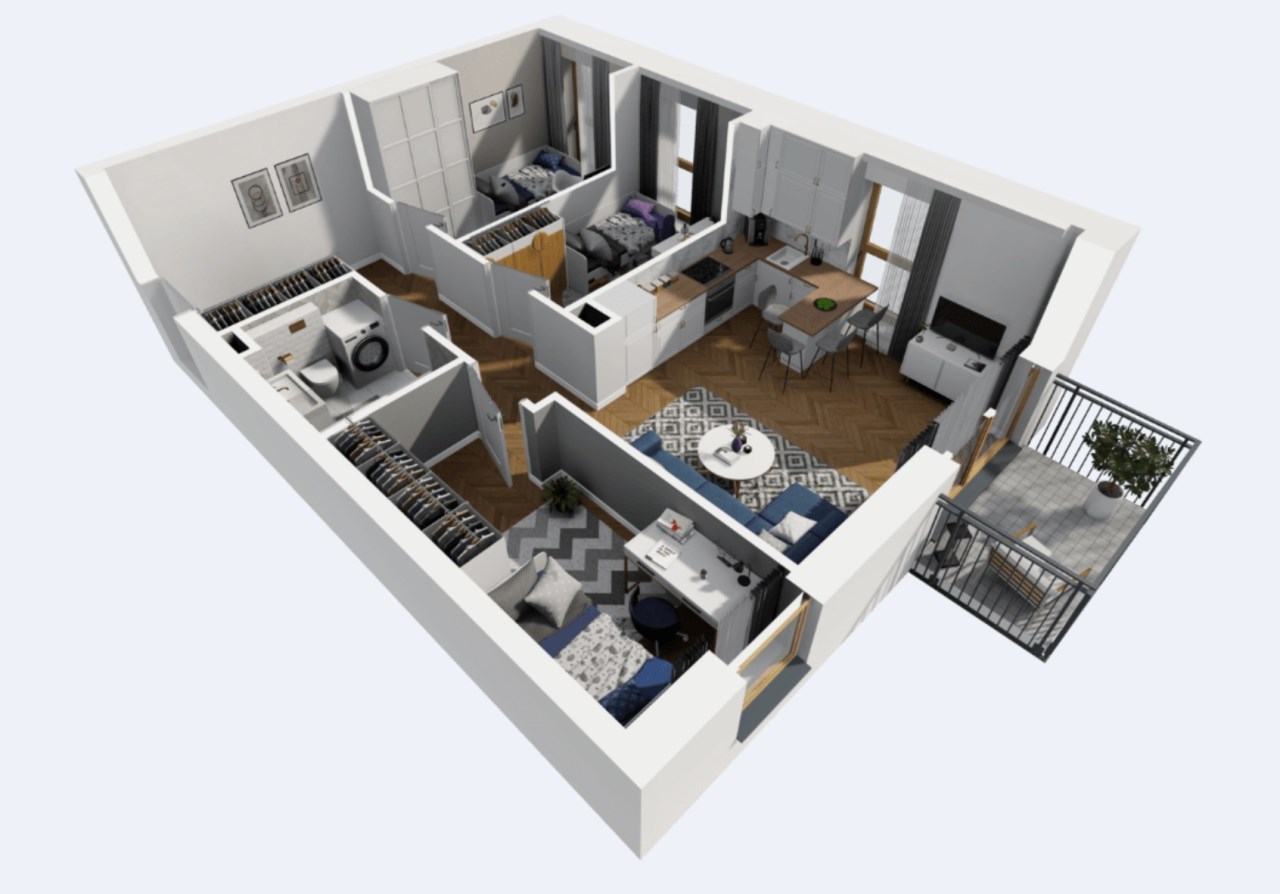 Mieszkanie z widokiem na góry | 54,91 m² | 2. piętro | 3 sypialnie + salon z aneksem | Garaż gratis