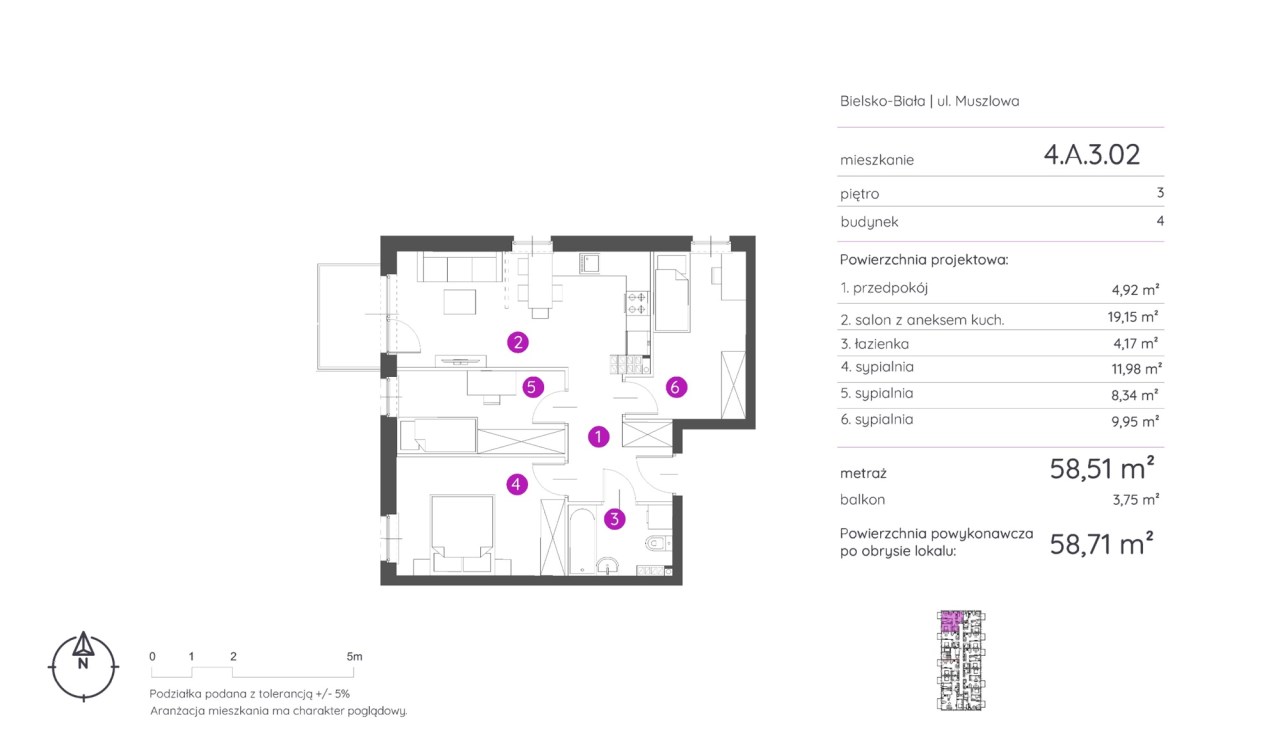| Powierzchnia użytkowa [m2] | 58,51 m² |