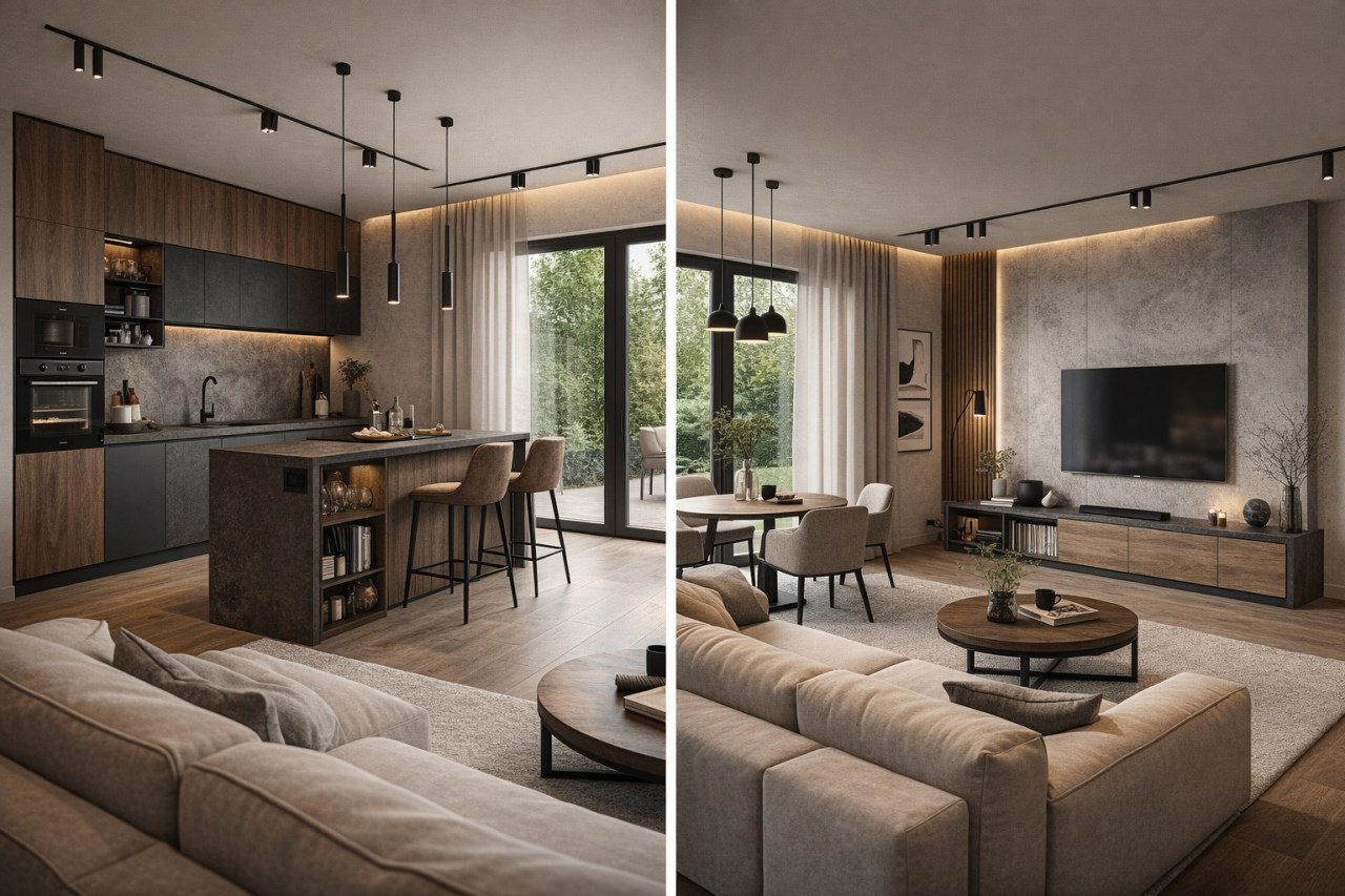 salon z aneksem kuchennym