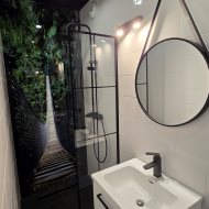 Wykończona w wysokim standardzie, wyposażona w pralkę oraz elegancką armaturę.