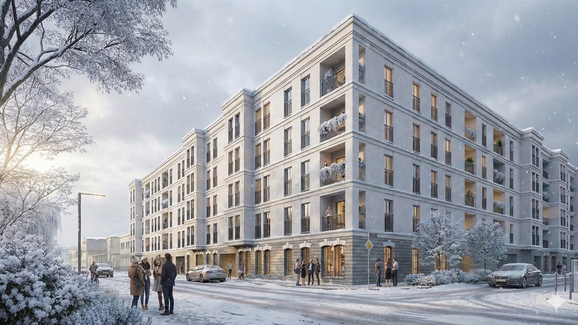 Załączone grafiki stanowią wizualizację. Rzeczywisty wygląd budynku zachowuje pełną zgodność z prezentowanym projektem.