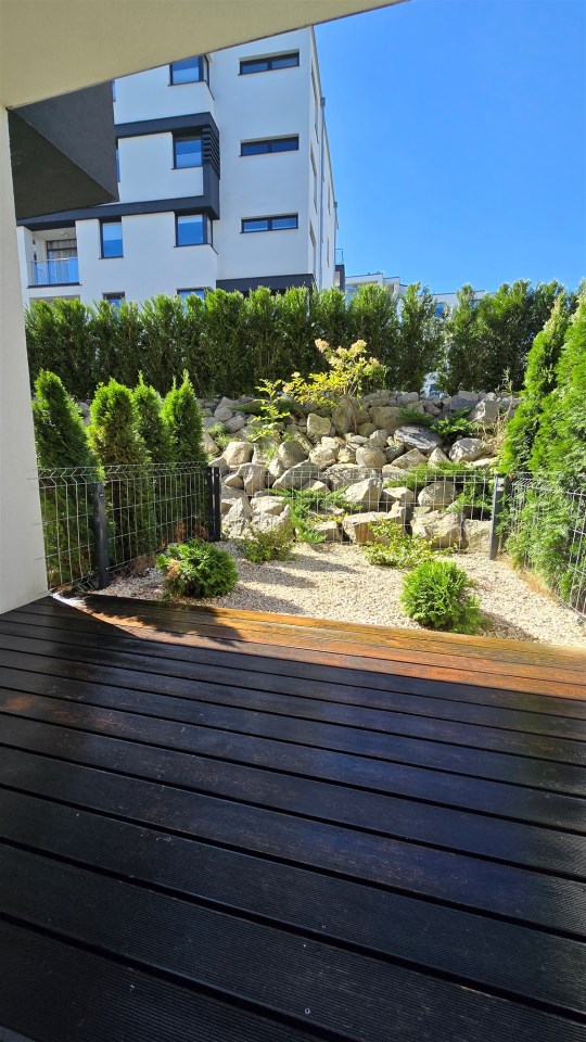 Prywatna przestrzeń z bezpośrednim wyjściem z mieszkania.