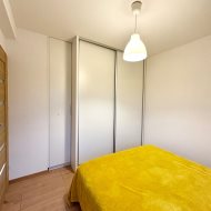 Sypialnia z wygodnym łóżkiem i pojemną szafą w zabudowie.